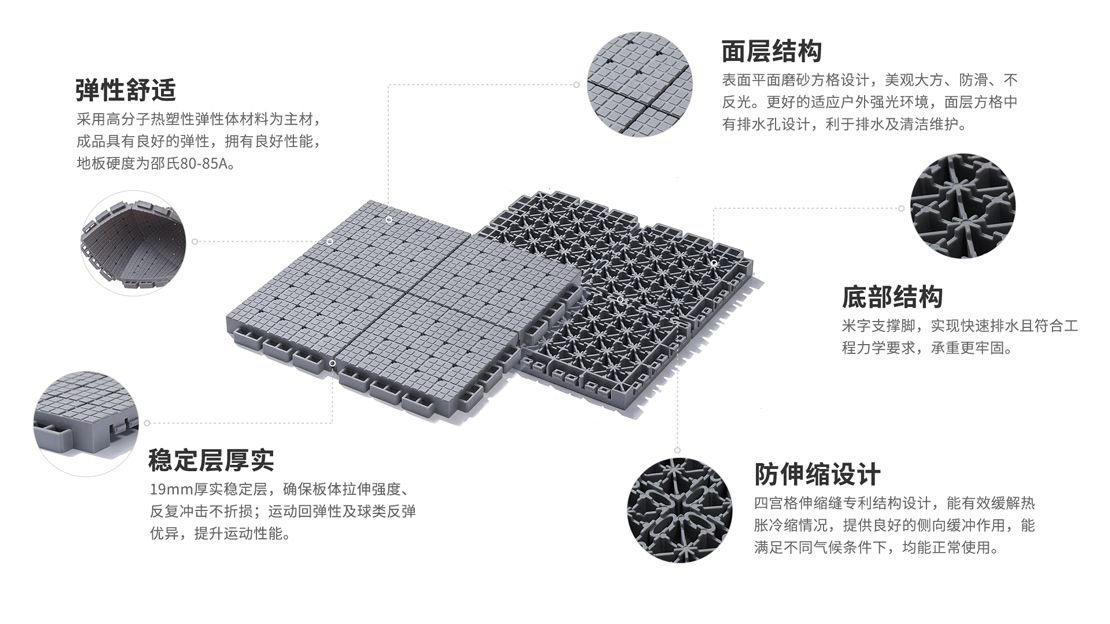 | 沖擊力吸收 25-75% | 垂直變形 ≤3.5% | 抗滑值 80-110 |